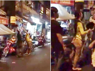 Chồng tát vợ trước mặt con nhỏ bị người đàn ông tức giận xông vào đánh giữa phố