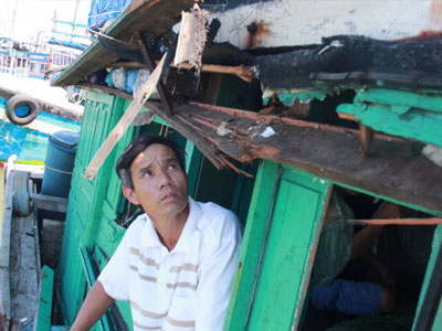 Thuyền trưởng Nguyễn Tuấn (50 tuổi, xã Bình Châu, huyện Bình Sơn) cho biết tàu ông đánh bắt ở khu vực biển gần các đảo Phú Lâm, Bom Bay, Lin Côn (thuộc quần đảo Hoàng Sa của Việt Nam) thì bị tàu Trung Quốc tông thẳng vào.