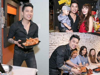 Lê Hoàng vừa chạy bàn vừa bế con thay vợ trẻ