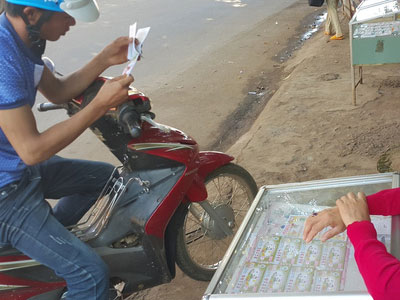 Giữa “cơn sốt” vé số kiểu Mỹ, mỗi ngày người bán có thể thu lời cả nửa triệu đồng nhờ bán chênh lệch giá, nên dù tại Đắk Nông vẫn chưa có điểm bán chính thức, nhưng hàng trăm người vẫn đổ xô đi bán loại vé số tự chọn… in sẵn này.
