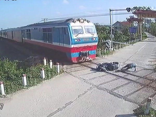 Dù là đường ngang có gác chắn tự động nhưng nạn nhân vẫn vượt qua đường, dẫn đến tai nạn thương tâm.