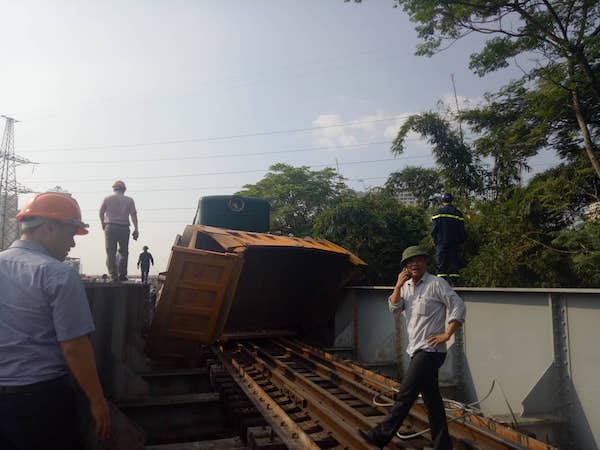 Đại diện VNR cho biết, nguyên nhân ban đầu là do tài xế xe tải vượt đường ngang thiếu quan sát. Tuyến đường sắt bị ách tách nhiều giờ làm một số chuyến tàu bị ảnh hưởng.