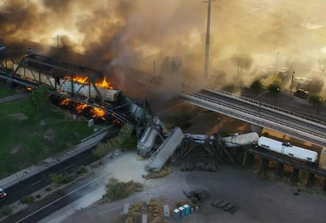 Vụ trật đường ray diễn ra trên một cây cầu qua hồ ở thành phố Tempe, khiến một phần chiếc cầu đổ sập, theo nhà chức trách. Không có thương vong nào được báo cáo.