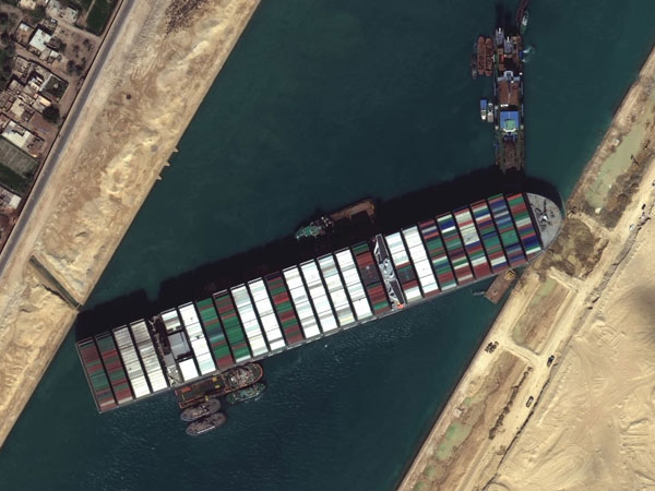 Ngày 23/03/2021, tàu Ever Given - một trong những tàu container lớn nhất Thế giới - trên đường di chuyển từ châu Á sang châu Âu đã bị mắc cạn khi di chuyển qua kênh đào Suez. Việc con tàu bị mắc cạn đang làm ách tắc 9,6 tỉ USD hàng hóa mỗi ngày giữa Châu Á và Châu Âu.