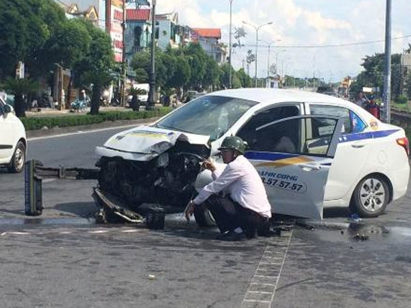 Taxi tông gãy trụ đèn cao áp, ba người nhập viện