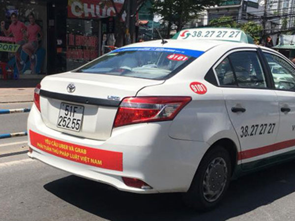 Taxi truyền thống dán khẩu hiệu phản đối quyết định của Bộ GTVT