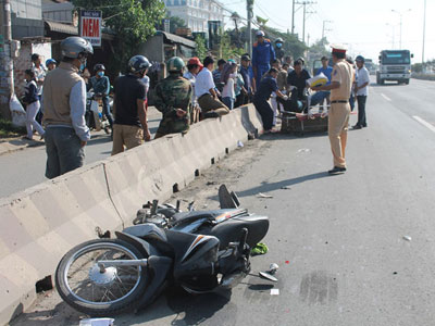 Điều khiển xe máy chạy vào làn đường dành cho xe ô tô, nam thanh niên va chạm với xe tải, té xuống đường, tử vong tại chỗ.