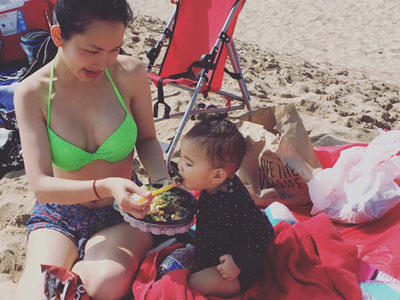 Kim Hiền diện bikini, vui đùa bên gia đình trên bãi biển