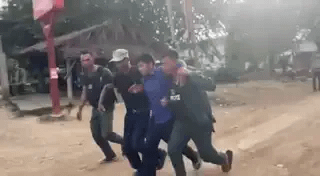 Khi dân làng Campuchia cố gắng phá hàng rào dây thép gai của Thái Lan, cảnh sát chống bạo động Thái Lan đã đáp trả bằng hơi cay và đạn cao su.