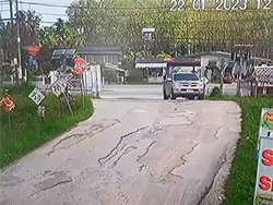 Khi đang chạy qua đường ray, chiếc xe bán tải bất ngờ bị đoàn tàu tông trúng, kéo lê khoảng 100m. Sự việc xảy ra tại tỉnh Sa Kaeo, Thái Lan.