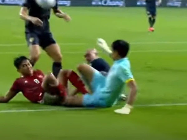 Ngôi sao tuyển Indonesia đạp trúng chỗ hiểm của thủ môn Thái Lan