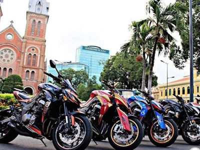 Năm chiếc xe phân khối lớn Kawasaki Z1000 đã có màn tụ hội đầy ấn tượng ngay giữa trung tâm Tp.HCM với “bộ cánh” được lên giáp theo phong cách siêu anh hùng Iron Man.