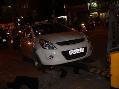 Đang chạy giữa khu trung tâm đông đúc, một chiếc xe 7 chỗ bỗng "bay" qua đường tông văng một xe 4 chỗ, rồi tông tiếp hai xe máy, mới chịu dừng lại. Tai nạn khiến ba người phải nhập viện.