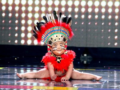 Trong đêm chung kết, cậu bé 5 tuổi tiếp tục là tâm điểm của sự chú ý với phần hóa thân thành tộc trưởng của một bộ lạc.