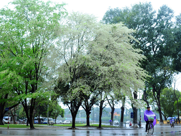 Giữa phố phường tấp nập, ta bỗng ngẩn người vì màu trắng tinh khôi. Hoa sưa nở rất nhanh. Chỉ trong một đêm, cả cây lớn đã nhuộm riêng một sắc, đột ngột và không thể ngăn trở.