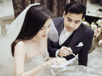 Ông xã diễn viên đưa Ngọc Lan đi thử váy cưới