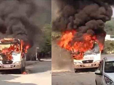 Chiếc ô tô khách loại 29 chỗ đậu bên lề đường bỗng dưng bốc cháy dữ dội ở phần đầu xe, chỉ trong ít phút, ngọn lửa đã bao trùm cả chiếc xe.