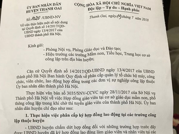 Những ngày qua, việc hàng trăm giáo viên tại các khối trường mầm non, Tiểu học, THCS ở huyện Thanh Oai (TP.Hà Nội) kêu cứu vì sắp có nguy cơ mất việc đã nhận được sự quan tâm của dư luận. Đằng sau câu chuyện đó là những cuộc đời, những số phận.