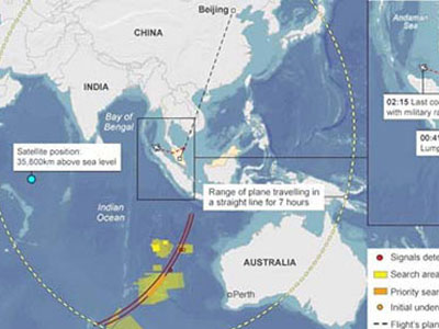 Ngày 23/2, tờ Mirror của Anh dẫn lời các chuyên gia hàng không quốc tế cho rằng chuyến bay xấu số MH370 đã bị ai đó trong buồng lái cố tình điều khiển để xuống thẳng Nam Cực, tuy nhiên chiếc máy bay đã hết nhiên liệu và rơi xuống biển khi mới đi được nửa đường.
