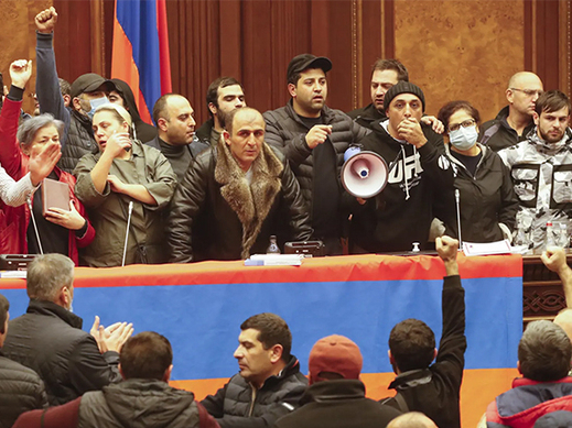 Người biểu tình xông vào các tòa nhà chính phủ tại thành phố Yerevan, thủ đô Armenia, sau khi dư luận phẫn nộ về thỏa thuận hòa bình chấm dứt cuộc chiến với Azerbaijan.