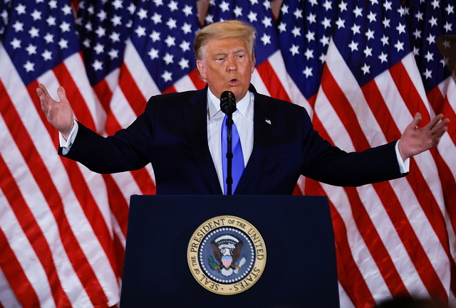 Tổng thống Mỹ Donald Trump tổ chức họp báo tại Nhà Trắng lúc 2 giờ sáng, sau khi ngày bầu cử kết thúc.