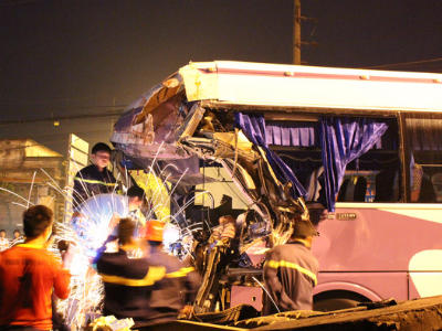 Trang 1Dùng máy xúc phá cabin, đưa thi thể tài xế mắc kẹt sau tai nạn ra ngoài
