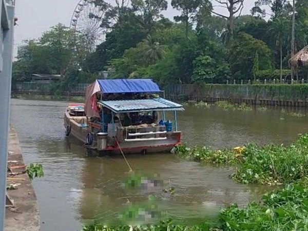 Một số người dân đi qua con sông Vàm Thuật, phường Thới An, quận 12, TPHCM hốt hoảng phát hiện thi thể nam thanh niên trôi trên sông nên hô hoán báo công an.