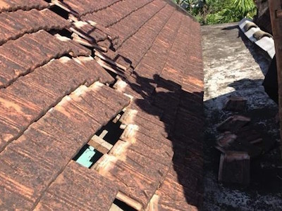 Đang ngủ trưa, ông Tiến (Nghệ An) giật mình nghe tiếng máy bay hạ cánh phía trên mái nhà. Vội gọi vợ con chạy ngoài, gia đình phát hiện 200 viên ngói bị tốc, hư hỏng.