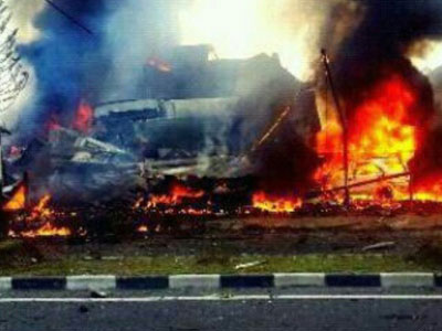 Một người dân gần hiện trường tai nạn của phi cơ vận tải Hercules C-130 ở Indonesia cho hay, cô thấy máy bay lượn vài vòng trên đầu. Sau đó nó va chạm với mái khách sạn và phát nổ.