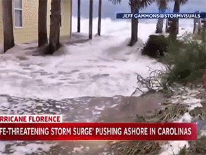 Video: Bão Florence làm nước biển dâng, đường phố Mỹ chìm trong lũ