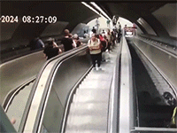 Đây là khoảnh khắc đáng sợ khi những người đi bộ bị hất ngã khi chiếc thang cuốn đột nhiên đổi hướng và lao về phía sau với tốc độ chóng mặt.