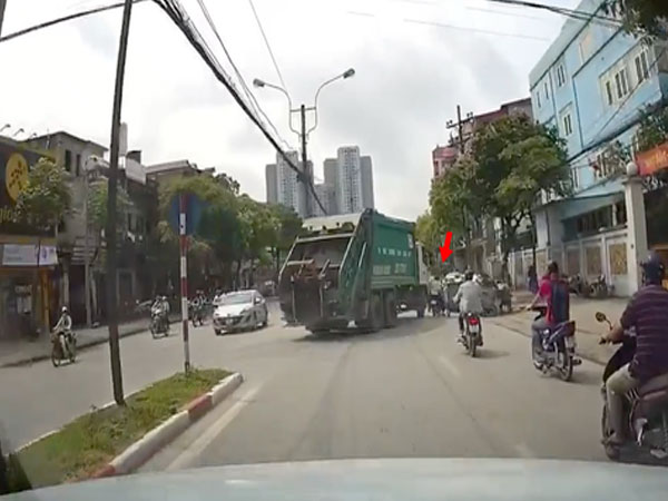 Hà Nội: Va chạm với xe rác đang quay đầu, người đàn ông thoát chết trong gang tấc