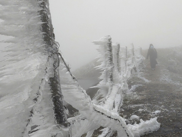 Băng giá phủ trắng trên đỉnh Phia Oắc, Cao Bằng