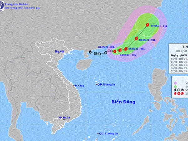 Từ 1 giờ tới 13 giờ ngày 4/8, áp thấp nhiệt đới di chuyển theo hướng Đông Đông Bắc, mỗi giờ đi được 5-10km và có khả năng mạnh lên thành bão.