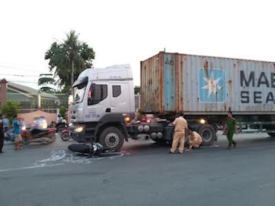 Va chạm với xe container, cụ ông bị cán nát tay chân