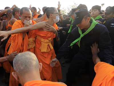 Cảnh đối đầu quyết liệt giữa hàng nghìn sư Thái và cảnh sát