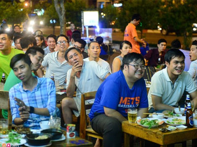 Đường Phạm Văn Đồng tại TP HCM từ đầu mùa Euro đến nay xuất hiện hàng chục quán cà phê, nhậu có lắp đặt máy chiếu, tivi hai bên đường phục vụ khách hâm mộ bóng đá.