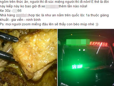 Tối 15/4, khi dùng bữa tối tại nhà hàng N.A., thực khách tá hỏa phát hiện có giòi trong khẩu phần ăn của mình. Đây là bữa ăn do hãng xe M.L. phục vụ khách trong chuyến đi đường dài.