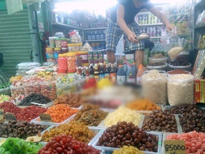 Những ngày cuối năm, tại các chợ đầu mối lớn, các loại bánh kẹo, mứt Tết, hạt dưa, hạt bí "3 không” được bán tràn lan khắp các các chợ, từ cửa hàng lớn đến các điểm kinh doanh nhỏ.