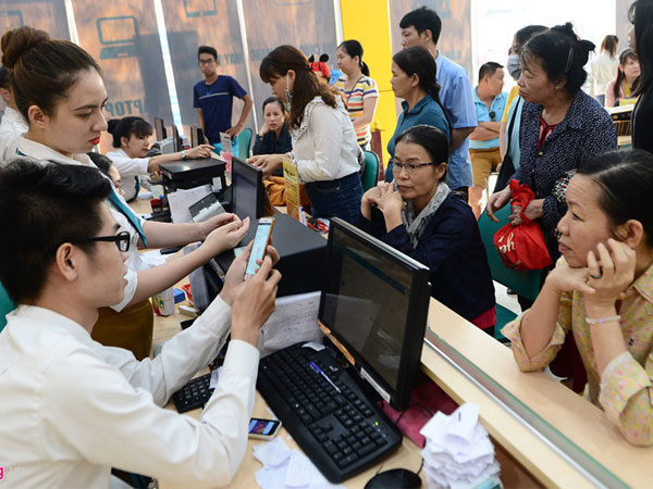 Quầy giao dịch của nhà mạng ở Sài Gòn chật cứng người chờ chụp hình