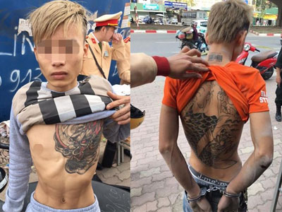 Thấy cảnh sát 141, hai thanh niên xăm trổ không đội mũ bảo hiểm bỏ lại phương tiện, tháo chạy nhưng bị giữ lại. Trong cốp xe, lực lượng chức năng tìm thấy ma túy đá.