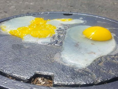 Dưới sức nóng gay gắt hơn 50 độ C ở Iraq, anh Abu Aloosh (tỉnh Kerbala) thử rán trứng trong một cái chảo đã đặt ngoài trời khoảng 30 phút, rồi quả trứng chín sau vài giây.