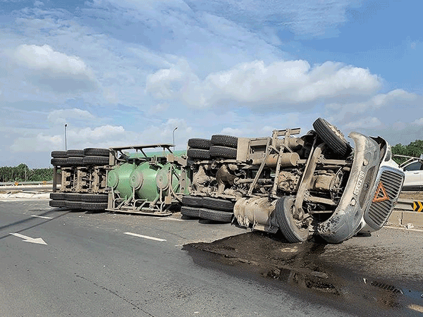 Lật xe bồn, rớt thùng container khiến giao thông hỗn loạn