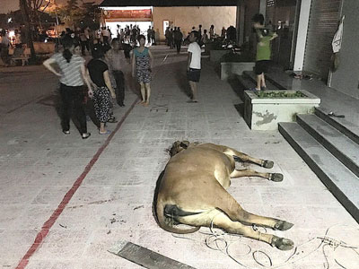 Người dân mang bò chết lên vây chung cư