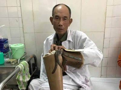 Ông Hoàng Tiến Vin - thương binh hạng 2/4, bị cụt một chân đã bị một nhóm thanh niên hành hung ngay trên đường sau khi xảy ra va chạm giao thông.