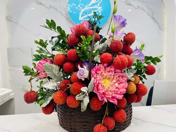 Vải thiều xuất Nhật được bày như lẵng hoa, giá 35.000 đồng/kg