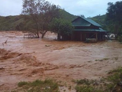 Dòng nước lũ với lưu lượng 560 m3/s tràn về tống trôi 1 cánh van chặn dòng thủy điện Sông Bung 2 (Quảng Nam), cuốn hai công nhân mất tích, gây ngập nhà cửa khu vực hạ lưu. Người dân làng Pa Ooi chạy lũ trong tiếng than khóc.