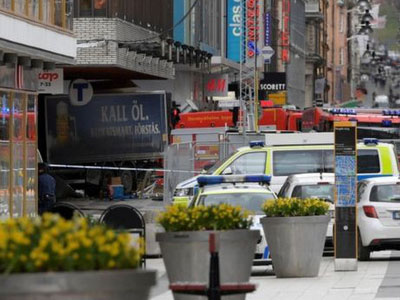 Một xe tải lao vào đám đông trong một cuộc tấn công được cho là khủng bố ở trung tâm thủ đô Stockholm, Thụy Điển, làm ít nhất ba người chết và 8 người bị thương.