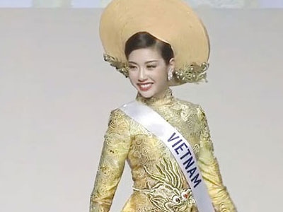 Á khôi Áo dài đã trở thành á hậu 3 của cuộc thi Hoa hậu Quốc tế 2015 (Miss International), diễn ra ở thủ đô Tokyo, Nhật Bản.