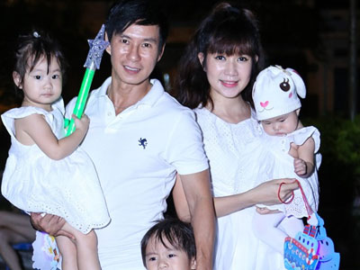 Vợ chồng Lý Hải cùng ba con rước đèn đêm trung thu